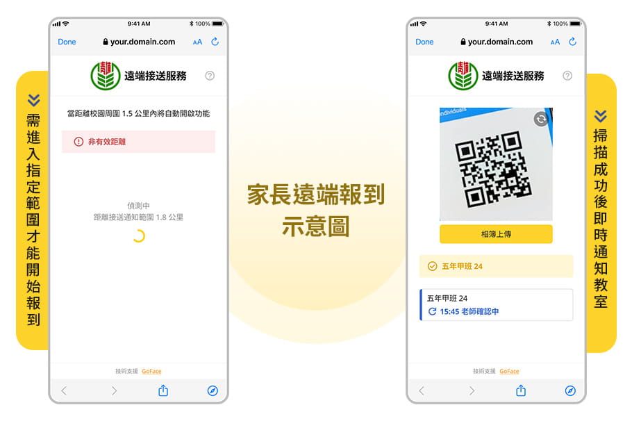 A:可以!除放學接送外,也可應用於課後活動接送、校內活動簽到、安親班接駁等多元場景。